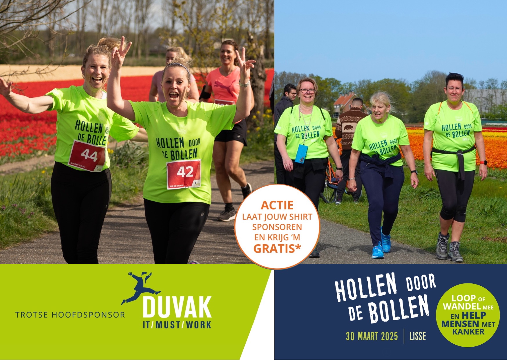• Wij organiseren voor de 9e keer voor een heel goed doel een fantastisch loop-en wandelevenement Hollen door de Bollen en zijn op zoek naar verkeersregelaars of parcours assistenten die de lopers en wandelaars de goede kant op loodsen en tegelijk zorgen dat het afgezete parcours veilig blijft. Als verkeersregelaar volg je eenmalig een korte online test. Voor deze test is een coördinator aanwezig. Als parcours assistent heb je dezelfde taken maar op een minder druk punt op het parcours waar je hoofdzakelijk met de deelnemers te maken hebt.